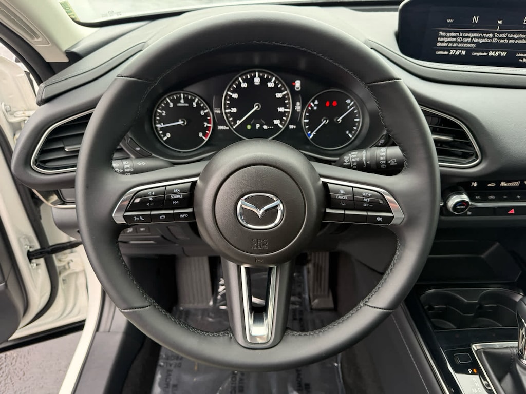 Sunroof, Heated Driver Seat, Back-Up Camera, iPod/MP3 Input, Onboard Communications System, Aluminum Wheels, Keyless Start, Dual Zone A/C, Lane Keeping Assist, WiFi Hotspot. Rear Spoiler, MP3 Player, Keyless Entry, Privacy Glass. Mazda CX-30 2.5 S Preferred Package with Snowflake White Pearl Mica exterior and Black interior features a 4 Cylinder Engine with 191 HP at 6000 RPM*.