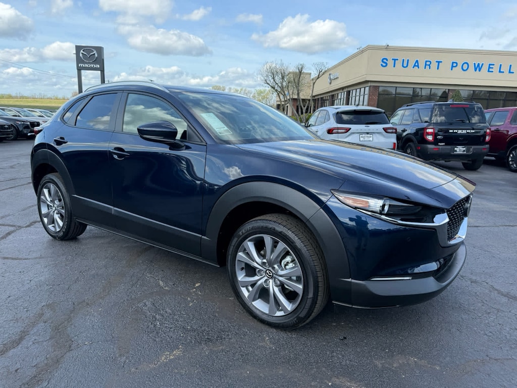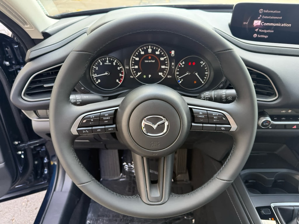 Sunroof, Heated Seats, WiFi Hotspot, Brake Actuated Limited Slip Differential, Dual Zone A/C, Onboard Communications System, iPod/MP3 Input, Back-Up Camera. CX-30 2.5 S Preferred trim, Deep Crystal Blue Mica exterior and Greige interior.