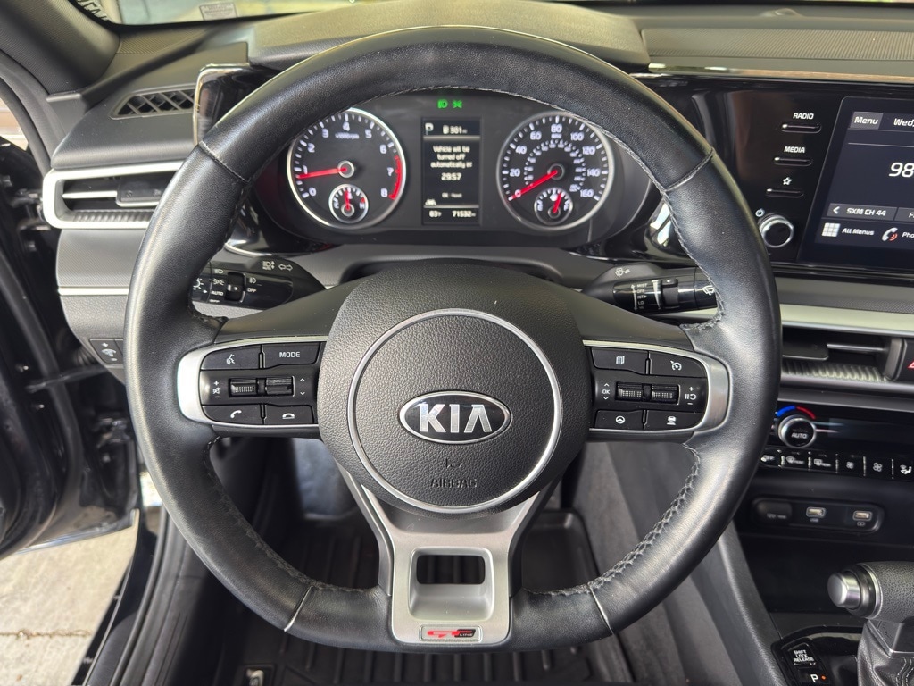 Sporty and stylish, this 2021 Kia K5 GT-Line comes equipped with a 1.6L turbocharged 4-cylinder engine paired with an automatic transmission and all-wheel drive for confident performance. Inside, enjoy premium features like sport seats, a leather-wrapped steering wheel, panoramic sunroof, 10.25" touchscreen with Apple CarPlay/Android Auto, and advanced safety tech including blind-spot monitoring and lane keeping assist.