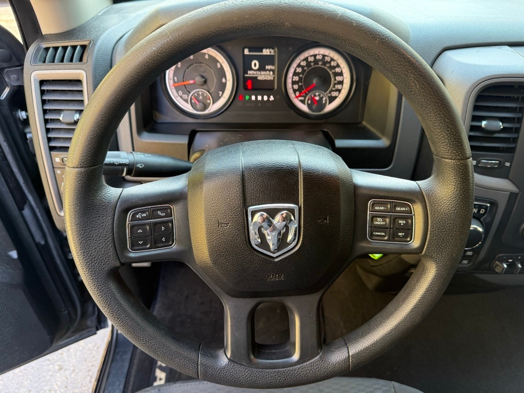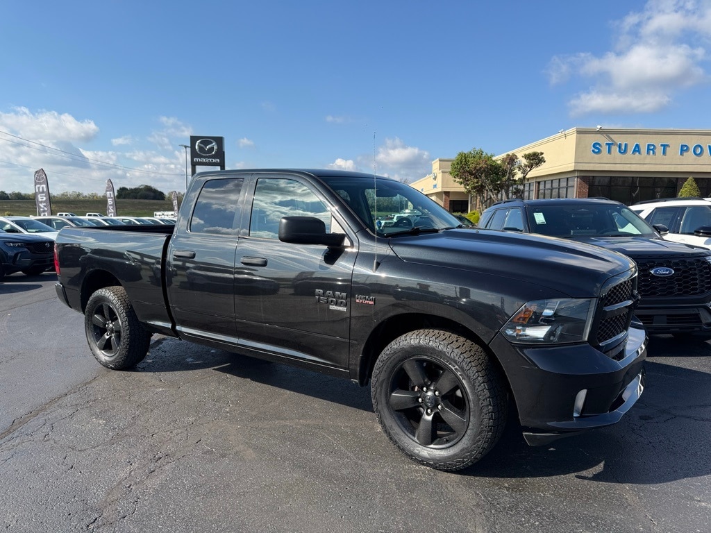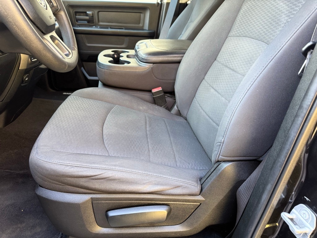 Express Black Accent Package (4x4 Flat Black Badge, Black Exterior Truck Badging, Black Headlamp Bezels, Black RAM Head Tailgate Badge, Body Color Grille w/Black RAM's Head, Semi-Gloss Black Hub, and Wheels: 20" x 8" Semi-Gloss Black Aluminum), Express Value Package (1-Year SiriusXM Radio Service, 5.0" Touchscreen Display, Audio Jack Input for Mobile Devices, Carpet Floor Covering, Center Hub, Cloth 40/20/40 Bench Seat, For More Info, Call 800-643-2112, Front Floor Mats, GPS Antenna Input, Integrated Voice Command w/Bluetooth, Manual Adjust Seats, Media Hub (USB, AUX), No Satellite Coverage w/AK/HI/PR/VI/GU, Overhead Console, Radio: Uconnect 3 w/5" Display, Rear Floor Mats, Rear Folding Seat, Rear View Day/Night Mirror, Remote Keyless Entry w/All-Secure, Remote USB Port, SiriusXM Satellite Radio, Temperature & Compass Gauge, and Wheels: 20" x 8" Aluminum Chrome Clad), Quick Order Package 26J Express (17" x 7" Aluminum Wheels, Body Color Front Fascia, Body Color Grille, Body Color Rear Bumper w/Step Pads, Delete Class IV Receiver Hitch, Delete Spray In Bedliner, Front Fog Lamps, and Ram 1500 Express), 17" x 7" Steel Wheels, 4-Wheel Disc Brakes, 6 Speakers, ABS brakes, Active Grille Shutters, Add Class IV Receiver Hitch, Air Conditioning, AM/FM radio, Auto-dimming Rear-View mirror, Black Seats, Brake assist, Delay-off headlights, Driver door bin, Dual front impact airbags, Dual front side impact airbags, Electronic Shift, Electronic Stability Control, Exterior Mirrors w/Heating Element, Front anti-roll bar, Front Center Armrest, Front wheel independent suspension, Fully automatic headlights, Heated door mirrors, Heavy Duty Vinyl 40/20/40 Split Bench Seat, Low tire pressure warning, Occupant sensing airbag, Overhead airbag, ParkView Rear Back-Up Camera, Passenger door bin, Power door mirrors, Power steering, Power windows, Radio data system, Radio: 3.0, Rear anti-roll bar, Rear step bumper, Speed control, Tachometer, Tilt steering wheel, Tip Start, Traction control, Trailer Brake Control, Variably intermittent wipers, and Voltmeter. CARFAX One-Owner. Clean CARFAX. Odometer is 2525 miles below market average! Recent Arrival!